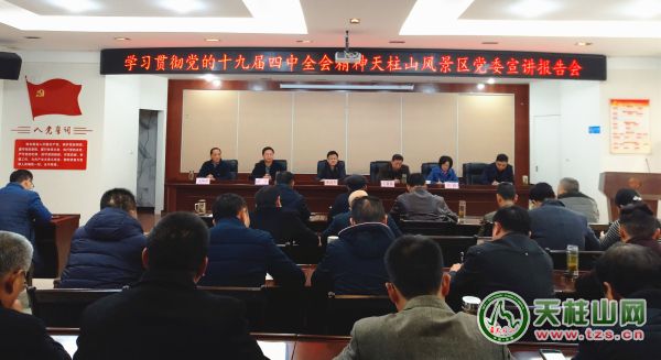 為深入學(xué)習(xí)貫徹黨的十九屆四中全會(huì)精神,12月13日下午,天柱山風(fēng)景區(qū)黨委舉行學(xué)習(xí)貫徹黨的十九屆四中全會(huì)精神天柱山風(fēng)景區(qū)黨委宣講報(bào)告會(huì)。市委常委、天管會(huì)副主任涂高生作宣講報(bào)告,風(fēng)景區(qū)紀(jì)委書記江霞主持報(bào)告會(huì),管委會(huì)領(lǐng)導(dǎo)班子成員,管委會(huì)機(jī)關(guān)全體干部職工,度假區(qū)管委會(huì)機(jī)關(guān)全體干部職工,各黨支部主要負(fù)責(zé)人,旅游公司班子成員、公司下屬二級(jí)機(jī)構(gòu)及經(jīng)營單位主要負(fù)責(zé)人,近五年內(nèi)退休的老同志,已退休的副縣級(jí)老同志參加會(huì)議。