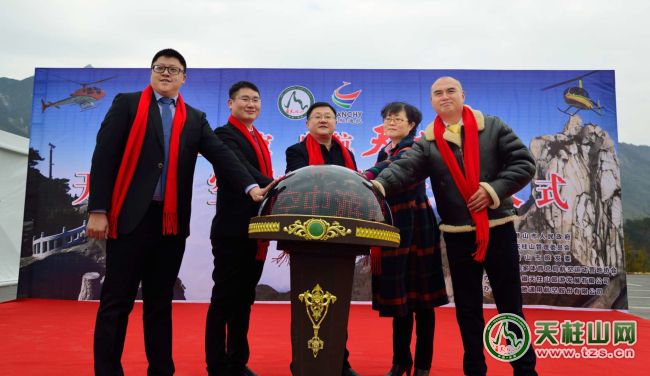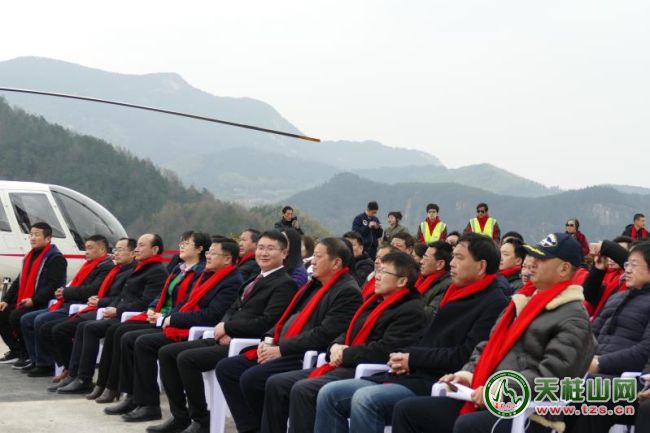 2019年1月25日上午,“空中看天柱”天柱山低空飛行旅游開航儀式在茶莊P1停車場(chǎng)(漢馳航空飛行基地)舉辦。儀式由潛山市人民政府、天柱山管理委員會(huì)、潛山市旅發(fā)委和國(guó)家體育總局航空運(yùn)動(dòng)營(yíng)地指導(dǎo),安徽天柱山旅游發(fā)展有限公司主辦,漢弛通用航空股份有限公司承辦。潛山市委常委、天柱山管委會(huì)主任涂高生,潛山人民政府副市長(zhǎng)蔡婷婷,國(guó)家體育總局航空運(yùn)動(dòng)營(yíng)地標(biāo)準(zhǔn)修訂專家委會(huì)委員何馳,漢馳通用航空股份有限公司董事長(zhǎng)涂楓,漢馳通用航空航空俱東部總經(jīng)理查雄風(fēng)等嘉賓共同啟動(dòng)開航儀式。市文化委、市旅發(fā)委、招商局、天柱山鎮(zhèn)、天管會(huì)等單位領(lǐng)導(dǎo)和主要負(fù)責(zé)人;項(xiàng)目建設(shè)合作運(yùn)營(yíng)機(jī)構(gòu)、新聞媒體記者和現(xiàn)場(chǎng)旅客等近200人共同參與開航儀式和首航試飛活動(dòng)。