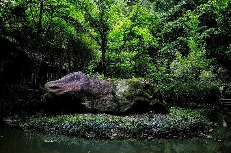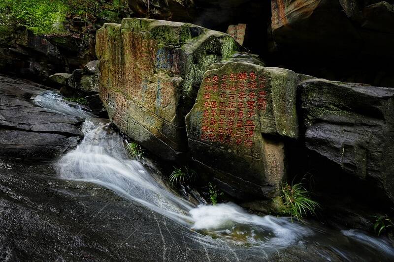 古時(shí),王安石在這里坐石而忘了憂愁,黃庭堅(jiān)甚至將此視為安身立命之所。蘇軾、朱熹、李公麟等名家或愜意夜游,或吟詩(shī)歌賦,留下了400余方縱肆的書法石刻。面對(duì)先賢的摩崖石刻,往來(lái)喧囂之心會(huì)變得安靜和謙卑。這里環(huán)境幽靜、植被茂密、溪水潺潺,是天然的“氧吧”,更是避暑消夏的好“涼”方。