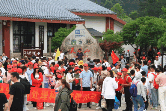 “中國旅游日”當(dāng)天,天柱山風(fēng)景區(qū)舉辦了“文明旅游、詩畫天柱、幸福中國”—全國旅游直通車萬人共攀天柱峰活動,迎來了來自省內(nèi)外直通車共計百余輛。
